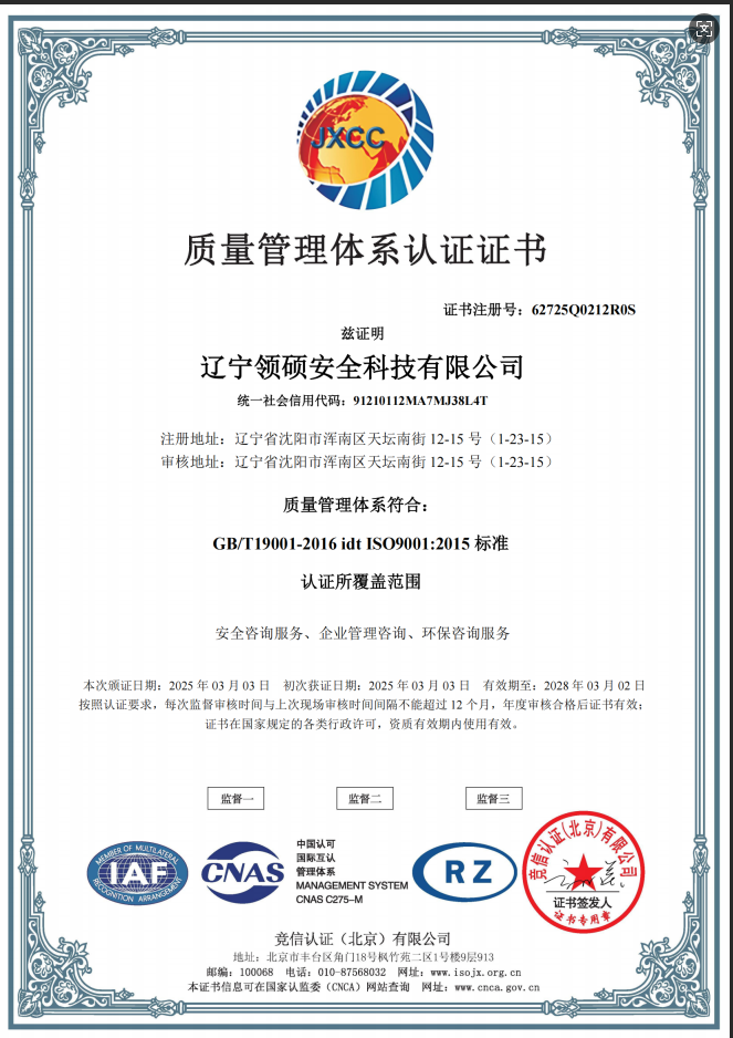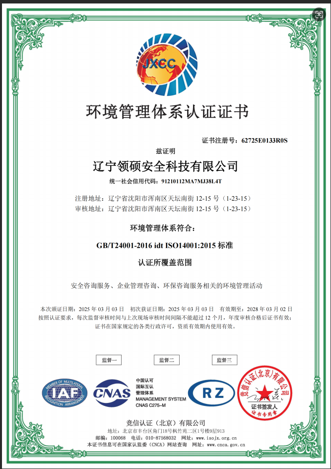 遼寧領(lǐng)碩安全科技有限公司位于遼寧省沈陽市渾南區(qū)天壇南街12-15號,注冊資金300萬。主要經(jīng)營范圍為遼寧省范圍內(nèi)的安全環(huán)保咨詢,生產(chǎn)安全事故應急預案技術(shù)服務、企業(yè)雙重預防機制建立、履職能力評估、企業(yè)科研項目安全部分服務等的技術(shù)服務機構(gòu)。現(xiàn)有員工12人,其中包括5名遼寧省級安全生產(chǎn)專家。成立于2022年4月18日,在盤錦市成立至今已經(jīng)為30余家企業(yè)提供了安全環(huán)保技術(shù)咨詢。 業(yè)務范圍包括:技術(shù)服務、技術(shù)開發(fā)、技術(shù)咨詢、技術(shù)交流、技術(shù)轉(zhuǎn)讓、技術(shù)推廣,安全咨詢服務,環(huán)保咨詢服務,標準化服務,企業(yè)管理咨詢,科技中介服務,工程管理服務,特種作業(yè)...查看更多
